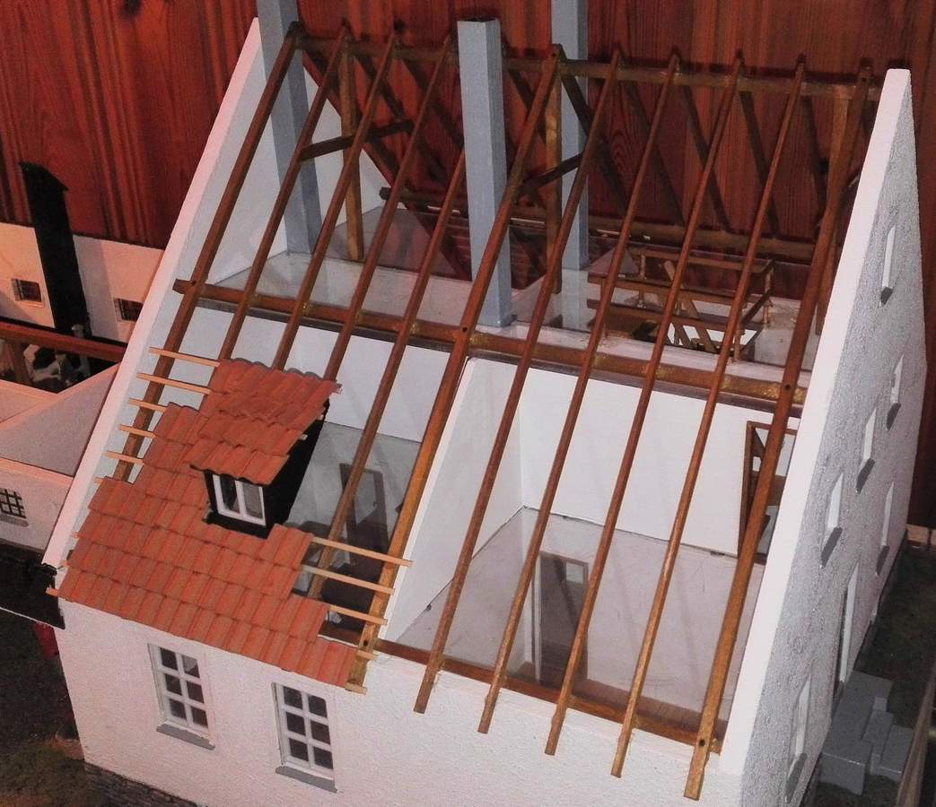 Die Ziegel entsprechen dem Maßstab 1 : 22,5, sehen aber für mich viel besser aus als die Dachplatten in Kunststoff.