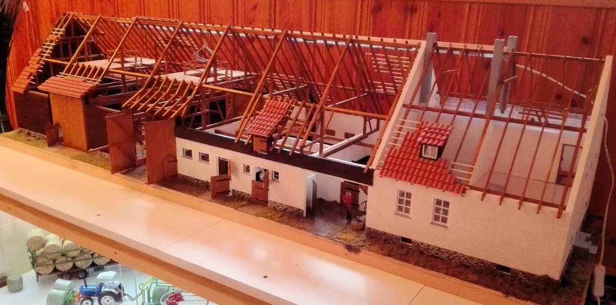 Auch am Scheunendach kamen ein paar Ziegel drauf.