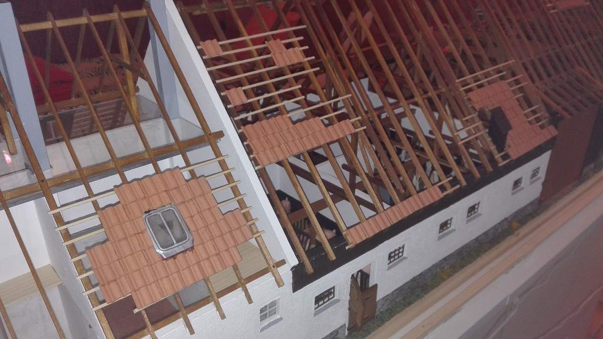 Daneben finde ich es immer schön, wenn man auch von oben in den Dachstuhl bzw. ins Gebäude schauen kann. Auch die einzelnen Ziegel sind sehr ansprechend. Allerdings kann ich mich mit der Lösung, die Dachziegelflächen partiell anzudeuten, nicht so recht anfreunden. Eine abnehmbare Dachfläche würde mir besser gefallen. Das ist aber nur mein persönlicher Geschmack - soll deine super Leistung keinesfalls mindern.;)