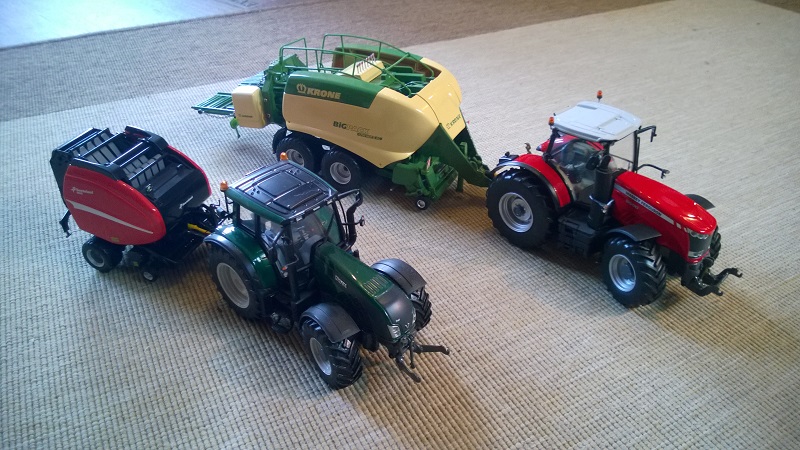 Den Anfang macht der Lexion 780 TT (Wiking), den ich vor knapp einem Jahr im Claas-Werk in Harsewinkel erstanden hab. Dazu der Fliegl ASW 288 (ebenfalls Wiking) und mein bis jetzt neuestes Modell, der 2014er Valtra S von UH. Über Geschmack lässt sich zwar streiten, aber für mich ist der große Valtra aktuell der wohl schönste Schlepper auf dem Markt