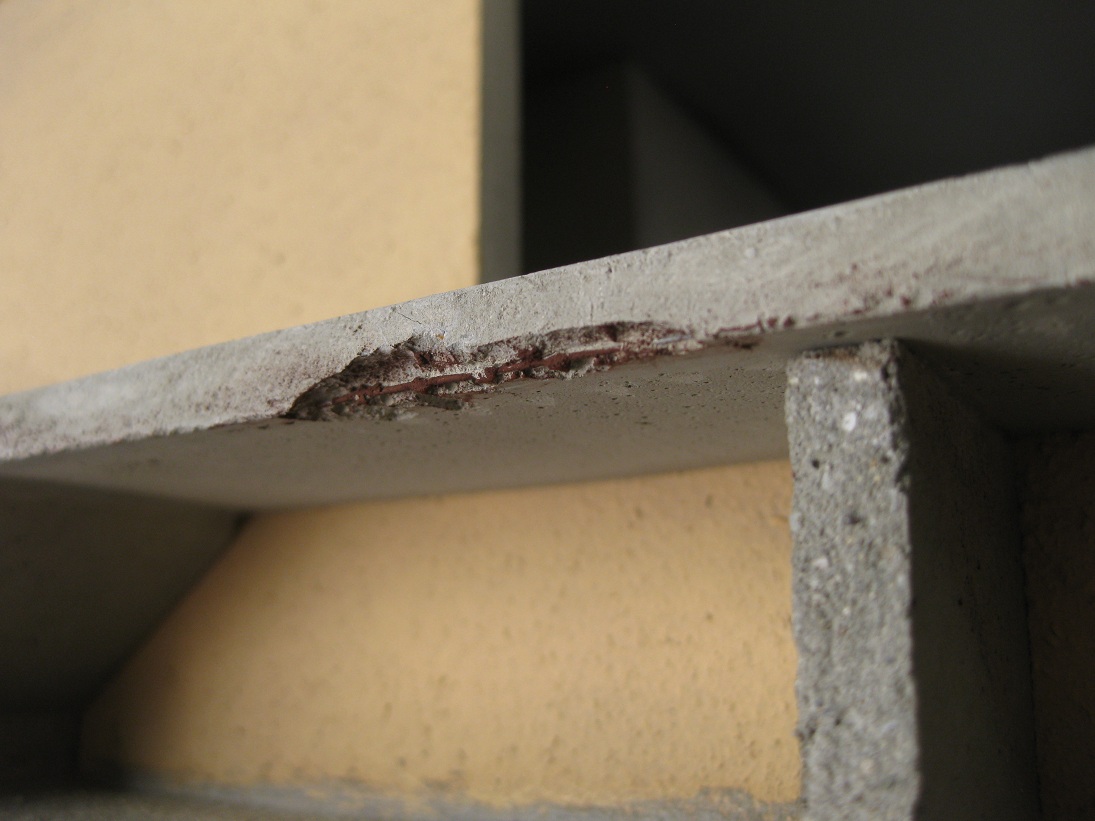 Die Treppe mit dem abgeplatzten Beton , bei der man auch noch das Eisen erkennen kann . Ja besser geht es ja einfach nicht mehr !