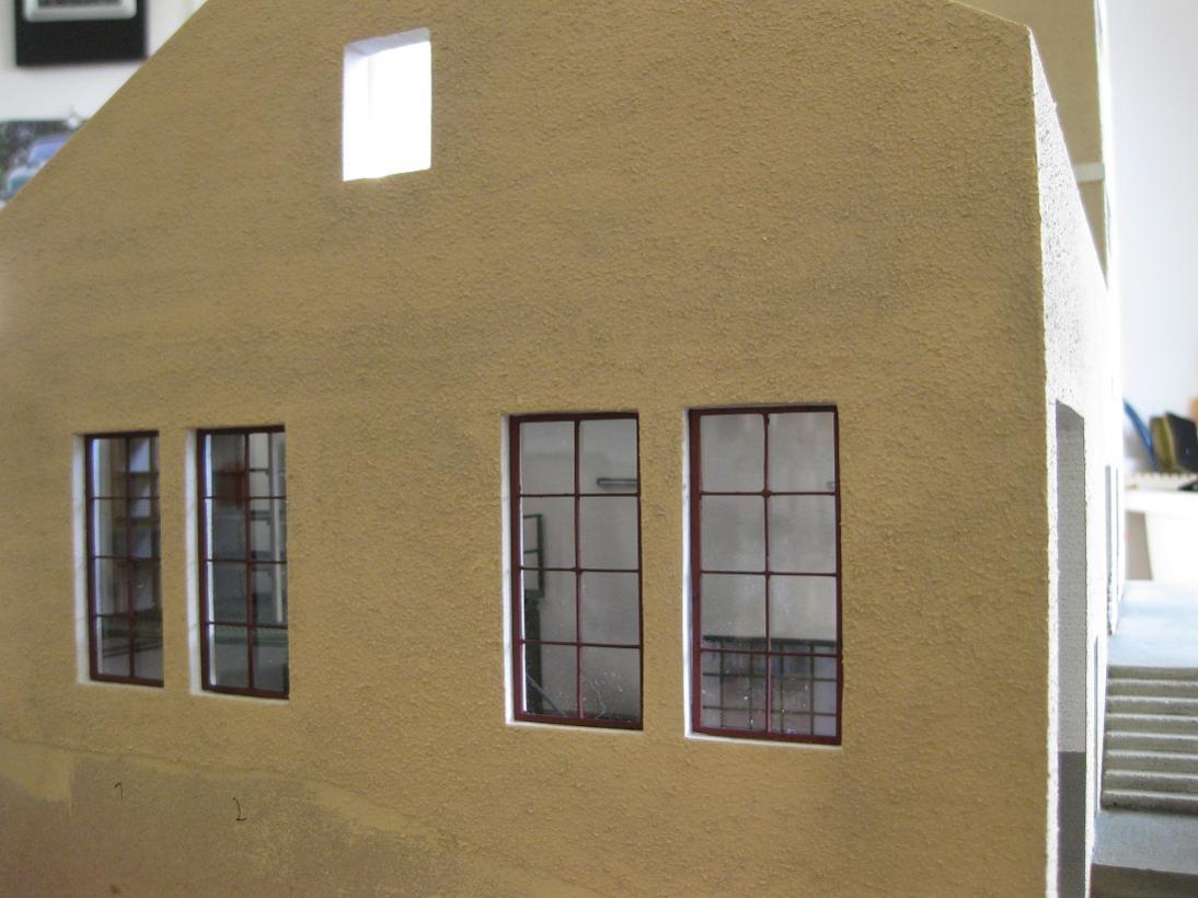 Ich bin gespannt, wie die Steine wirken, wenn die Wand verputzt ist. Mir schwebt ja noch immer ein verfallenes Lagerhaus mit Schienenanbindung vor. Dafür habe ich neben den Zeichnungen auch schon ein paar Probestücke gebaut. Abgebröckelten Putz und die darunter erscheinenden Mauersteine darzustellen, finde ich gar nicht so einfach.