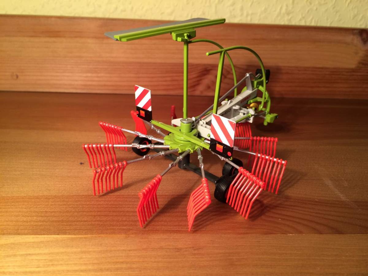 Das Modell passt ohne Adapter an Wiking, sowie Weise-Toys Traktoren. Mit dem Adapter dann an Traktoren von UH etc. Der Wiking Arion hebt den Schwader sehr gut aus, beim UH Arion und beim Weise-Toys Agrostar klappt das nicht so gut.