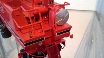 Einziges Manko von meiner Seite aus. Da, wo das Modell oben in Fahrtrichtung rechts am Korntank im Styropor gestanden hat, ist der Styropor auf dem Lack abgemalt. Hatten nahezu alle Modelle, die auf der Sima auch ausgestellt waren.