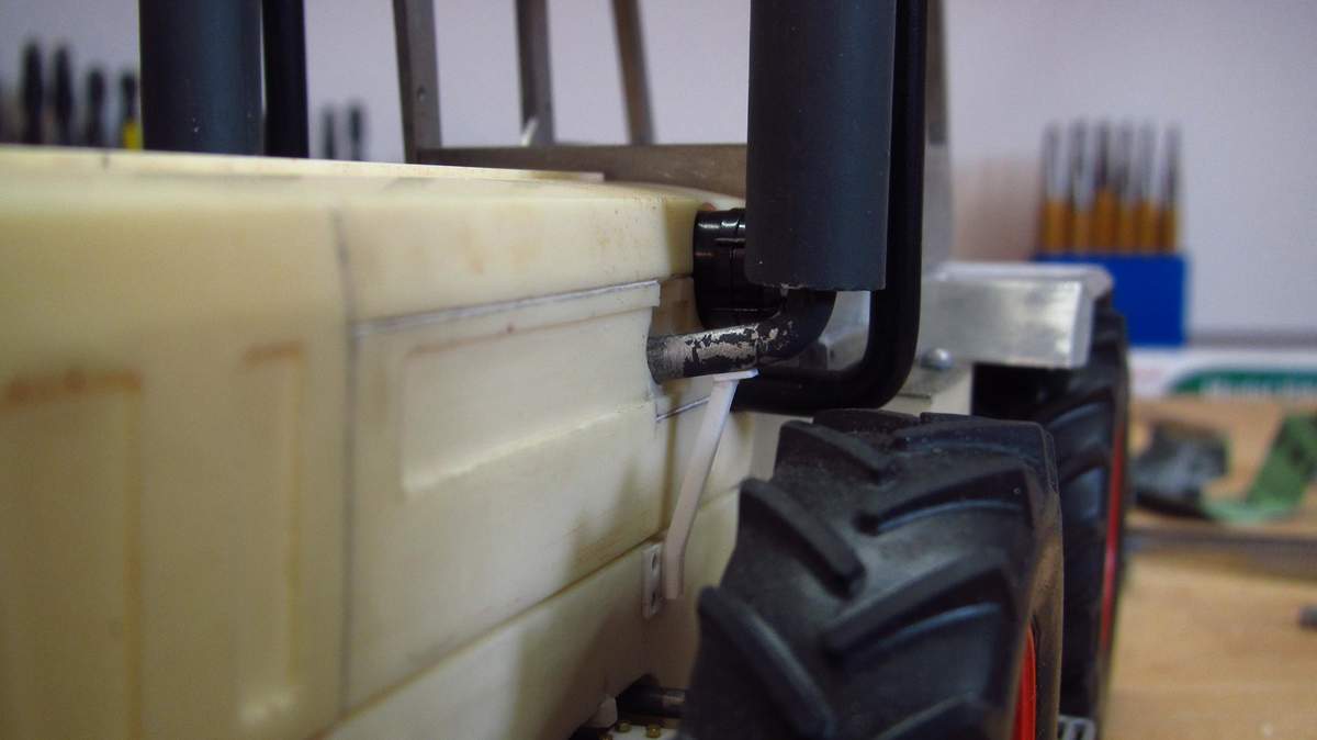 Kotflügeln hab ich nur 1:1-Fotos gefunden, auf denen die Rohre die Kabine überragen, dann soll