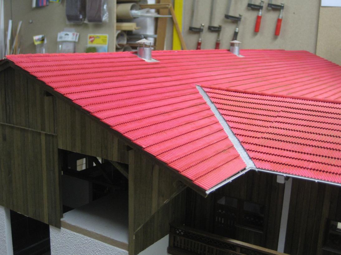 Wenn es günstig sein sollte, habe ich sonst auch die Wellpappe verwendet! Ich habe sie aber auf ca. 1,5cm breite Streifen geschnitten und so wie Dachschindeln aufgeklebt. Ich habe dir einmal ein Beispiel hochgeladen.