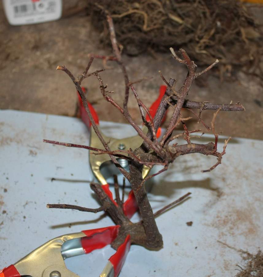 Deshalb ist der Plan, aus Wurzelstücken "Extensions" für die dickeren Äste zu machen.