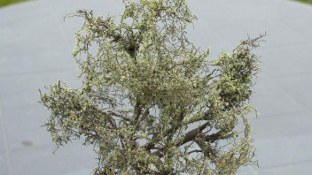 Der Baum ist jetzt soweit fertig. Um die Schnittflächen anzupassen, habe ich ihn zunächst mit unterschiedlichen Grautönen eingesprüht.