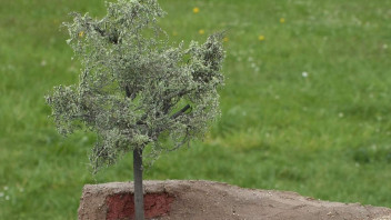 Dann hab ich mir mal den Baum vorgenommen. Er soll seitlich aus der Böschung rauswachsen. Da es auf dem Dio Frühling sein soll, sieht man bei den Gehölzen zwangsläufig das Astwerk ziemlich deutlich, weil ich gerade so das erste Grün andeuten will. Dafür finde ich aber das Filtervlies zu fein.