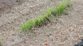 Den oberen Weg habe ich nochmal mit feinerem Material abgestreut und dabei die Grasbüschel etwas "versenkt".
