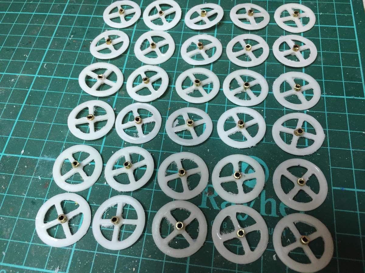 Dieses Modell wird komplett bis auf die Walzenringe aus Messing hergestellt. Die Walzenringe habe ich selber in Eigenproduktion in Kunststoff hergestellt.
