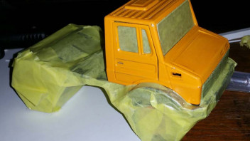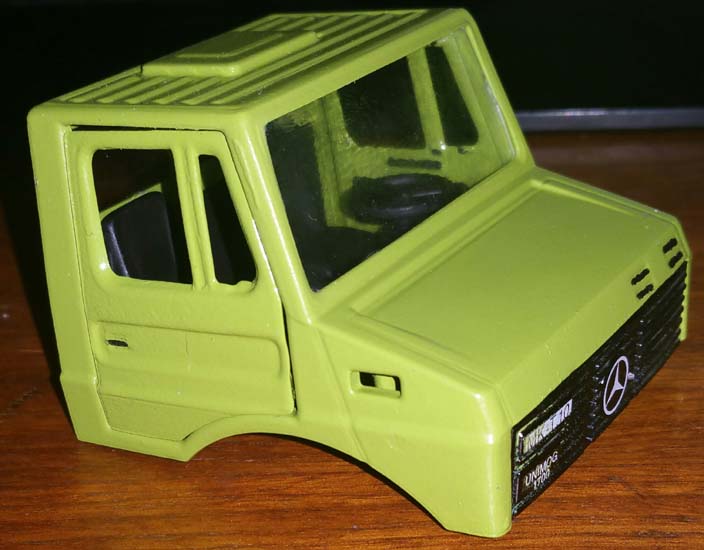3. Willst du wirklich die Siku-HH dranlassen? Ich kann ja verstehen, dass man die Kompabilität behalten möchte, meiner Meinung nach ist die aber derart klobig, dass man eben sofort sieht, dass das ein Siku Unimog ist, was du sonst eigentlich schön verfeinert hast mit den Spiegeln usw.