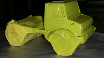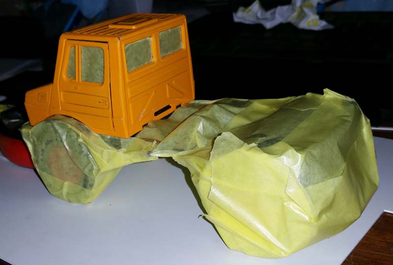 Hey, an die Reifen hab ich noch nicht gedacht. Bleibt nur die Frage: wie kann ich die Achsen umbauen, da fehlt mir noch der passende Einfall. Die Kabine hab ich grad abgebaut und entsprechend weiter lackiert.