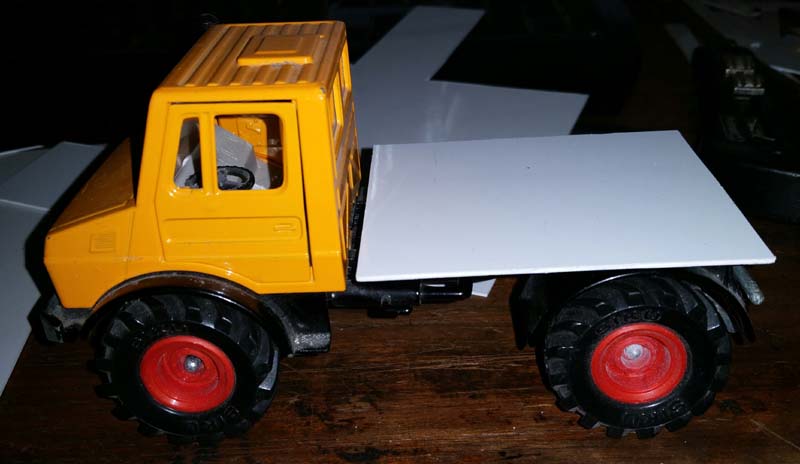 Auch hier tut sich mal wieder etwas. Diesmal hab ich mir den Siku Unimog 1700 vorgenommen. Insgesamt wird das gute Stück zunächst umlackiert (ja, ich gebs zu, ich bin Claas-Fan, insofern hab ich zum Claas Saatengrün gegriffen), dann bekommt er eine neue Heckmulde mit Häckselkante, die gleichzeitig als rechtskipper gestalltet wird. Der U-Mog soll später als Zugmaschine für ein HW 80 Gespann dienen.