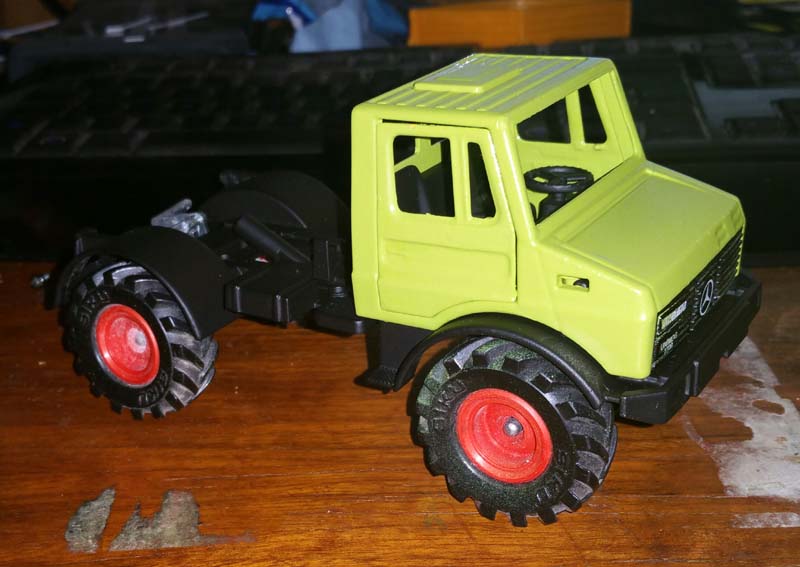 Hey, an die Reifen hab ich noch nicht gedacht. Bleibt nur die Frage: wie kann ich die Achsen umbauen, da fehlt mir noch der passende Einfall. Die Kabine hab ich grad abgebaut und entsprechend weiter lackiert.