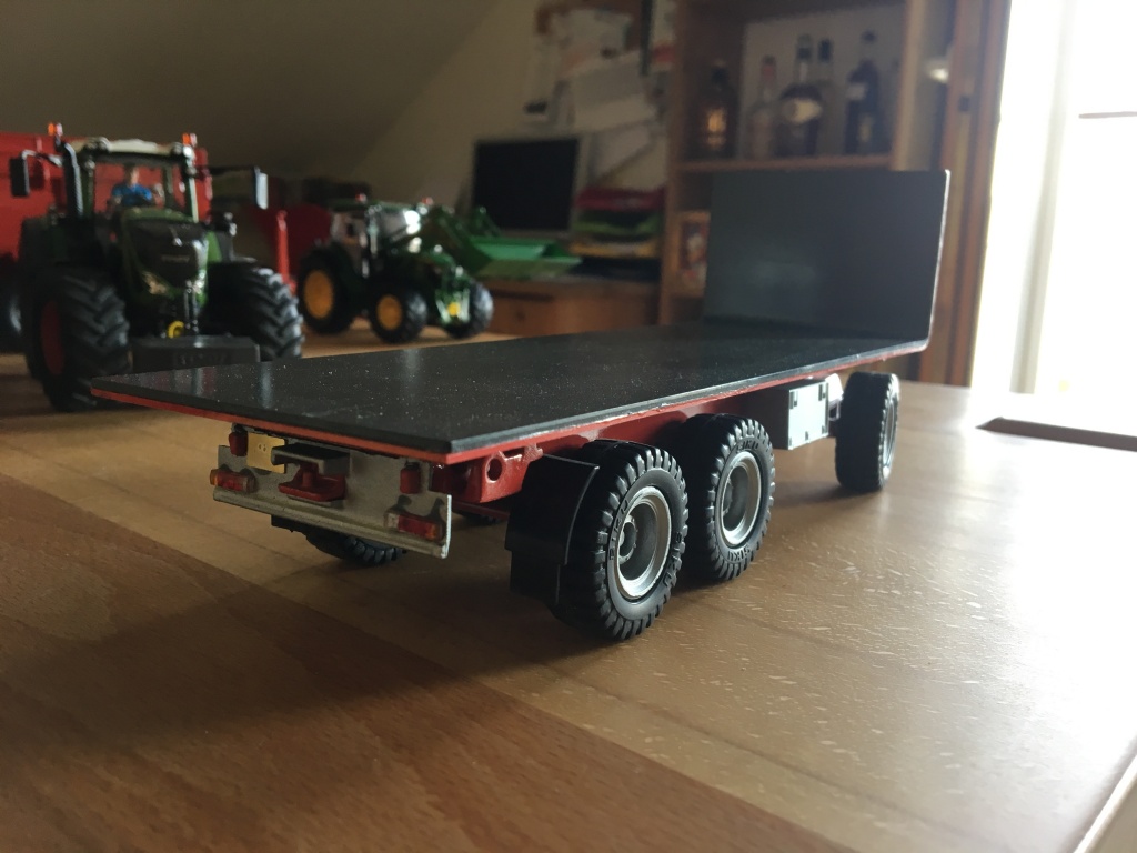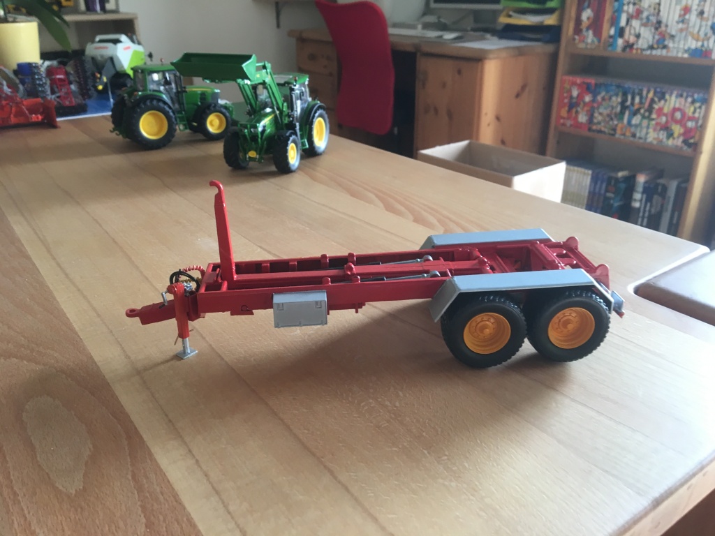 bei dem Hakenlift-Fahrgestell finde ich, dass das nicht so ganz rund aussieht mit der Tandemachse so weit hinten. Irgendwas fehlt davor, der freie Platz davor ist so lang...