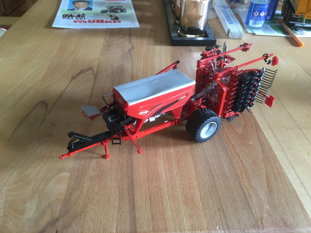 schön das dir der Streuer gefällt. Ich bin noch am Überlegen was ich mache aber die Idee mit der Alterung/Verschmutzung ist auch gut.Hier noch zwei Umbauten der letzten Zeit, als erstes die Kuhn Sämaschine von UH da gab es neue Reifen und die Abdeckung des Sattguttankes wurde geändert.