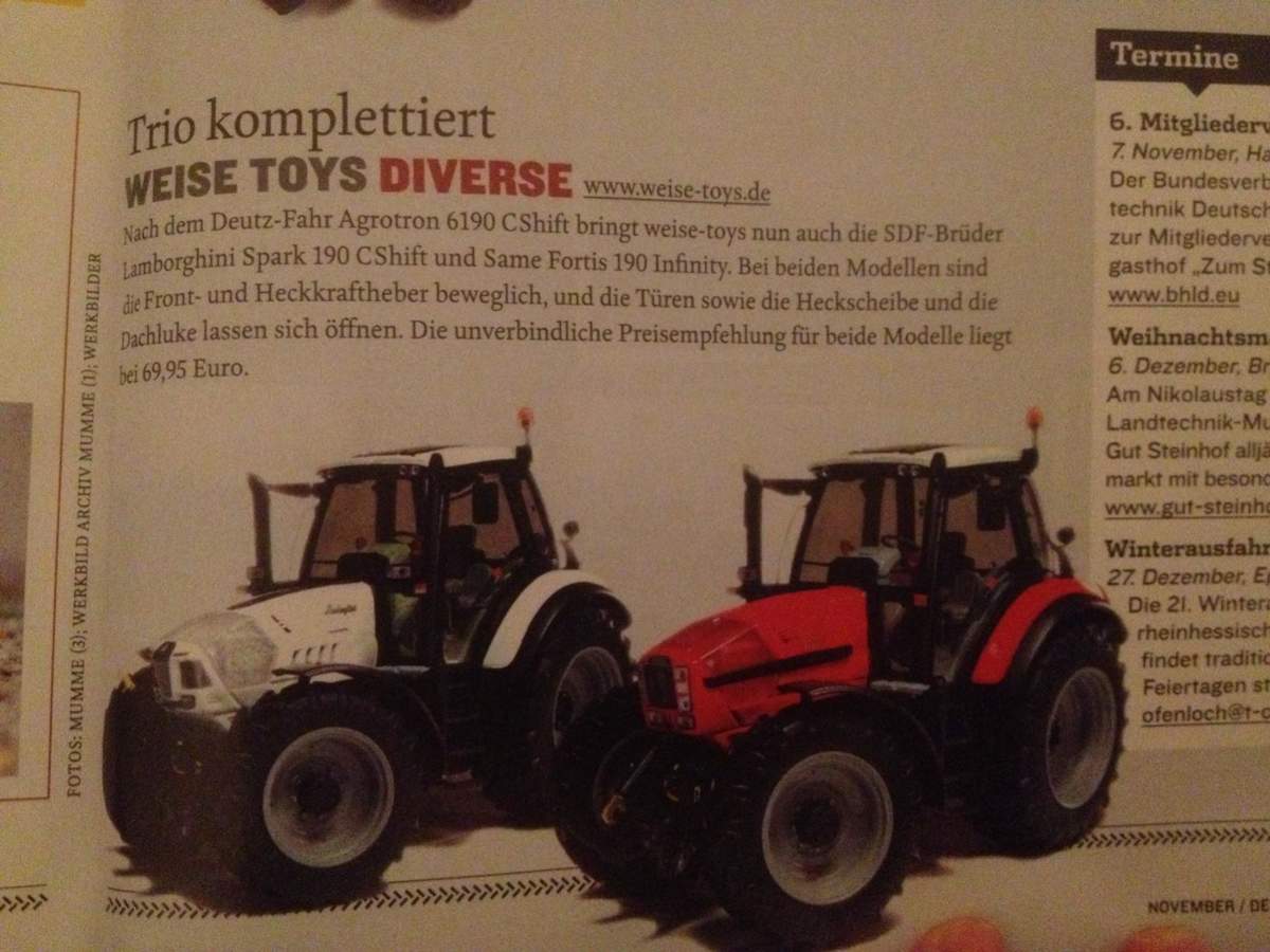 Naja aber die Modellhersteller setzten doch auch einige "kleinere" Landmaschinen um. Da kommt doch auch einiges zur Agritechnica dieses Jahr.
