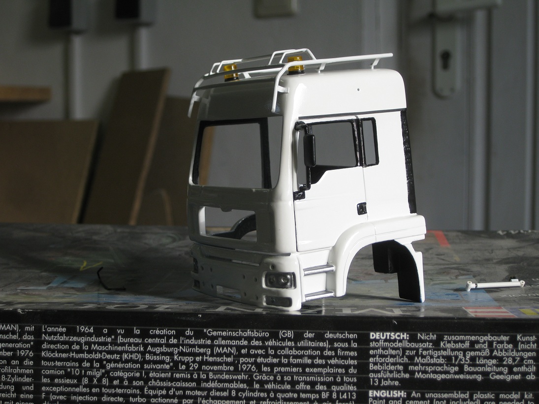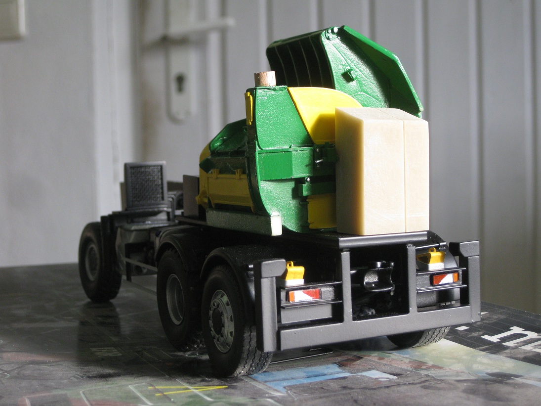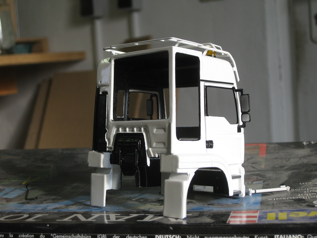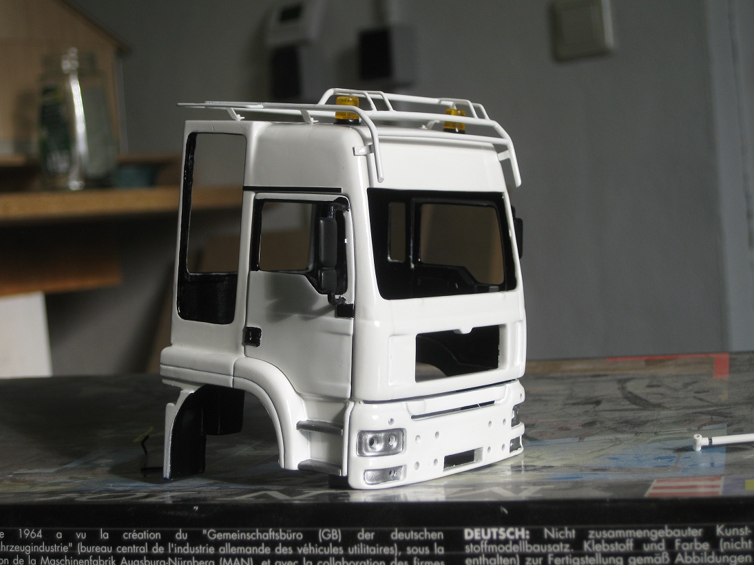 Die weiße Kabine wäre mir etwas zu kahl, da wäre ein Decal in dunkelgrün, evtl. Firmenlogo mit Tannenbäumen o.ä. eine Option....... -