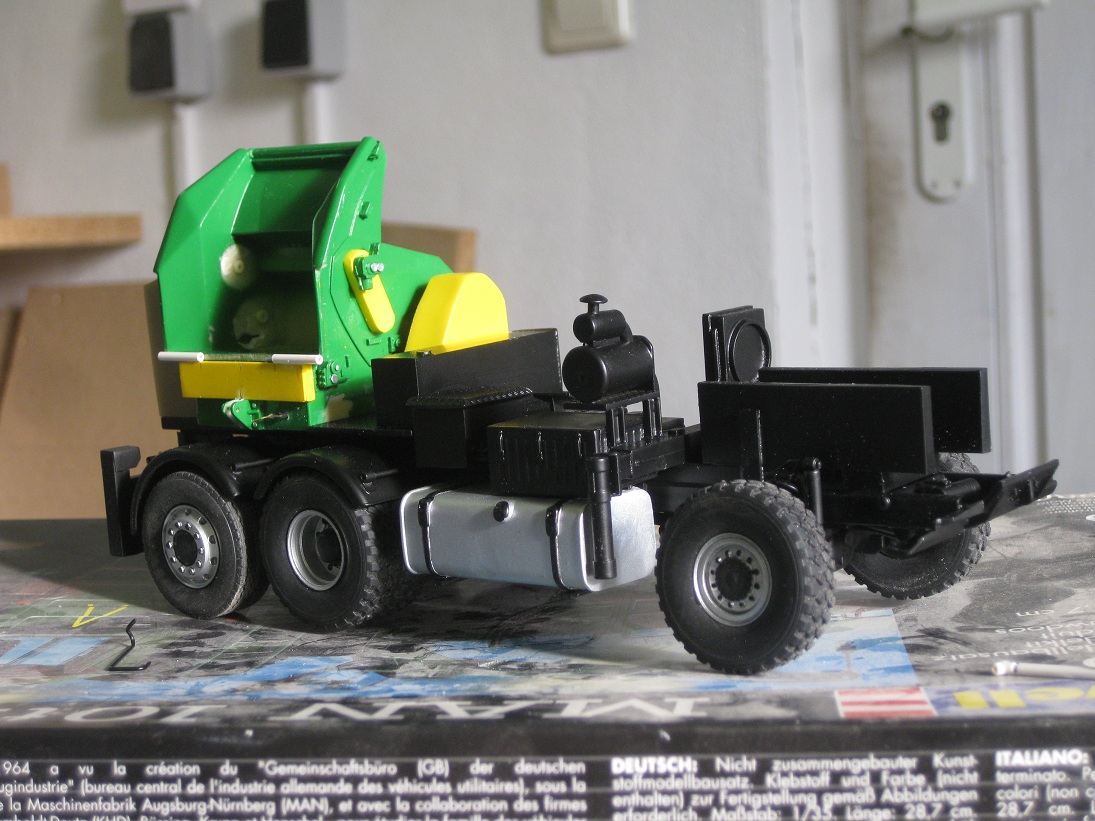 Eine kleine Anregung hätte ich allerdings noch, kann mich aber auch gut irren, da ich das Vorbild nicht so gut kenne: Sitzt die Kabine nicht etwas zu hoch? Natürlich ist das ein Offroad-Fahrgestell, wirkt aber aus meiner Sicht noch etwas zu extrem...