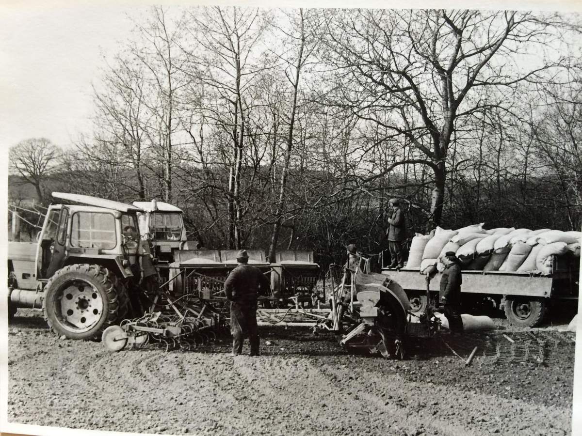 Also da ich damals nie einen grünen gesehen hatte (waren wohl für den Export oder Vorzeige Kombinate in Sachsen vorbehalten) hab ich dat Dingen zerlegt und orginal ZT rot aus der DDR Dose (hatte Vaddern noch) in die Sprühpistole gemacht. Dann ein paar Löcher in die Aufnahme und die TK Customs Silogabel ran. Die ist auch ein bißchen fett weil für'n K700 gedacht - aber die 3m Version geht noch so.