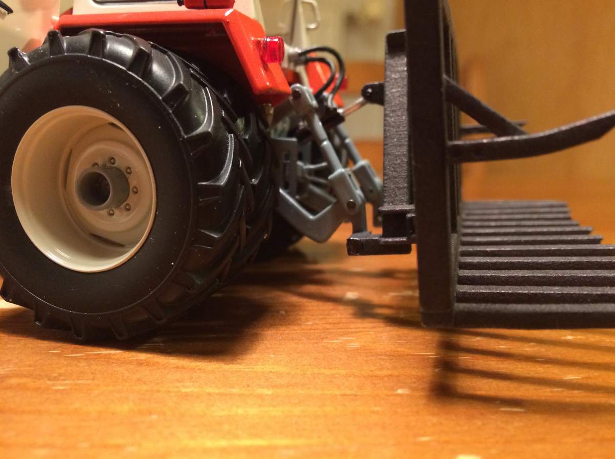 Also da ich damals nie einen grünen gesehen hatte (waren wohl für den Export oder Vorzeige Kombinate in Sachsen vorbehalten) hab ich dat Dingen zerlegt und orginal ZT rot aus der DDR Dose (hatte Vaddern noch) in die Sprühpistole gemacht. Dann ein paar Löcher in die Aufnahme und die TK Customs Silogabel ran. Die ist auch ein bißchen fett weil für'n K700 gedacht - aber die 3m Version geht noch so.