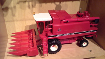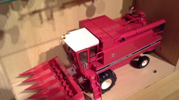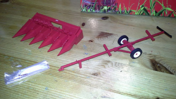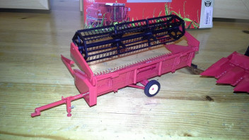 Das Maisgebiss ist im unteren Bereich aus Metall und recht schwer. Die Pflückspitzen und die Einzugsschnecke sind aus Kunsstoff. Der Pflücker sowie das Getreideschneidwerk können auf dem Wagen mitgeführt werden. Das finde ich super. So kann man in der Vitrine immer mal wechseln ;-)...
