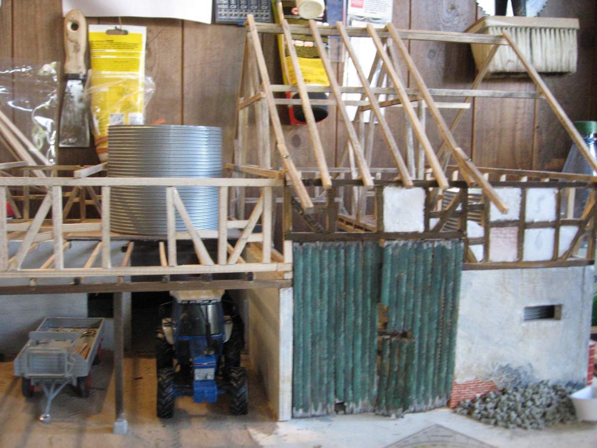Die Gereitesilos stehen schon an ihrem Platz, der DAchstuhl wurde angefangen, hier und da wurden Bretter verlegt: