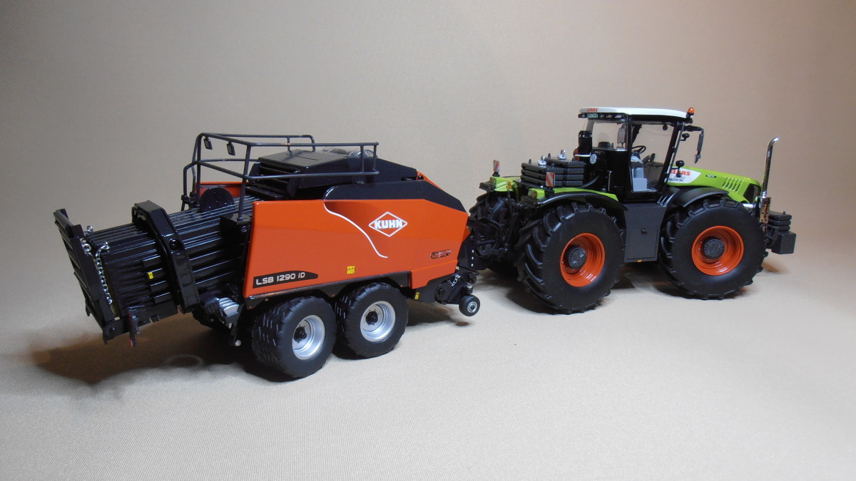 der Weise Xerion ist schmaler. Ich hab nur den Saddle Trac von Weise. Der dürfte ca. die gleiche Breite wie die Presse haben. Wiking hat beim Xerion 5000 in der Breite etwas übertrieben (in echt wäre das Gerät ca. 3,5m breit ). Beim Weise Xerion schließen die Räder ja mit den Kotflügeln ab.