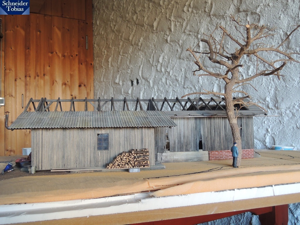 Der Teil mit dem Gebäude wurde inzwischen in die spätere Diofläche integriert. Ich habe das Gebäude leicht schräg positioniert, damit es etwas aufgelockert wirkt und auch um an manchen Stellen etwas mehr Fläche zu gewinnen. An der Einteilung des Dios habe ich lange getüftelt, aber jetzt bin ich ganz zufrieden.