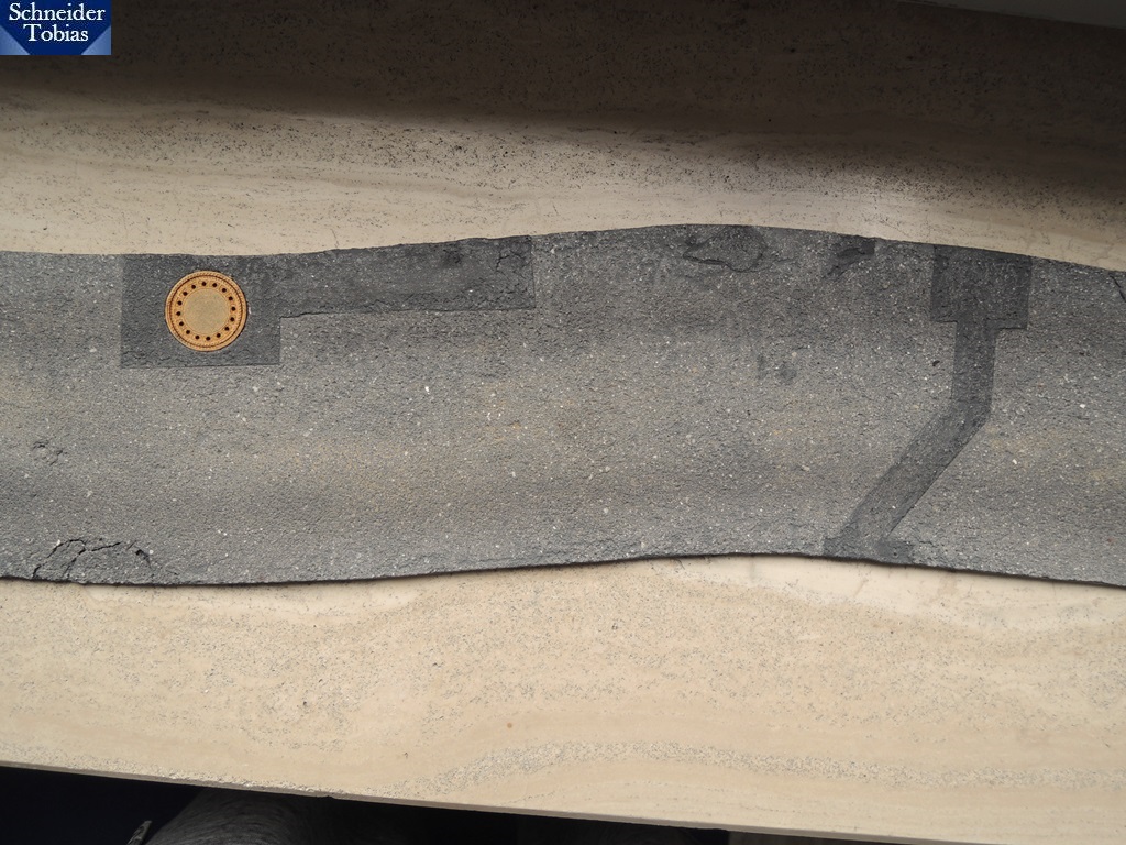 Ein Teil soll eine bereits ausgebesserte Stelle zeigen. Diese glänzt auch noch etwas mehr.