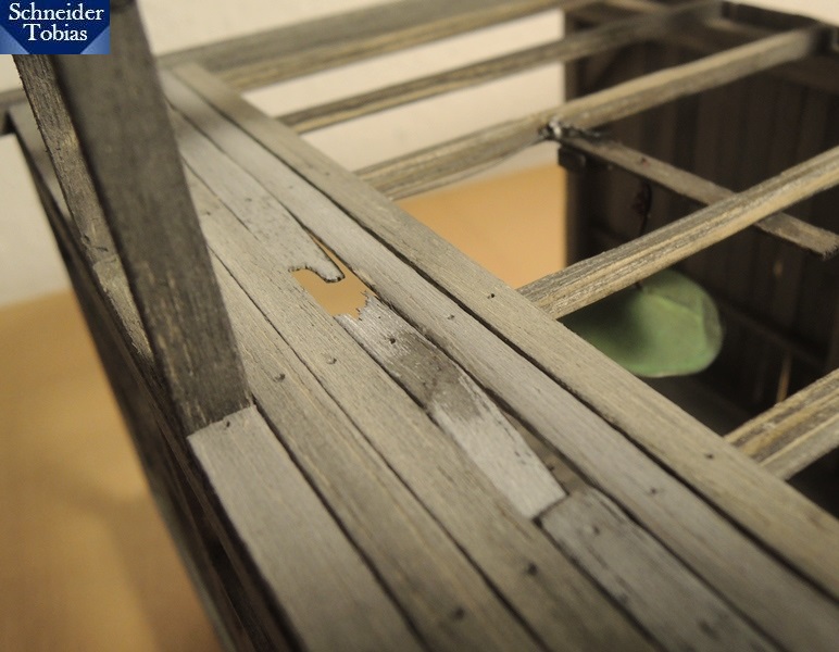 ... der nicht mal ersetzt wurde. Es war wohl zu viel Aufwand, den ganzen Speicher zu erneuern.;) Stattdessen setzte man einfach einen zweiten Balken daneben und reparierten nur die durchgebrochenen Bretter.
