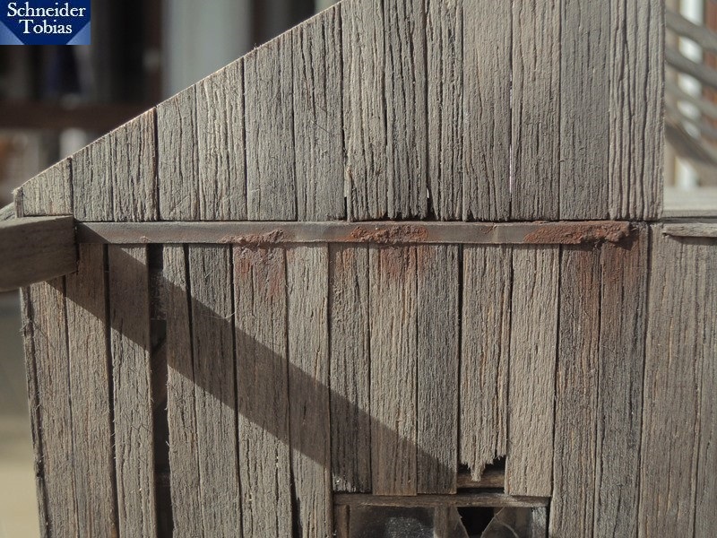 Weiter ging es dann mit dem Bretterverschlag an der hinteren Giebelwand, wo später der Anbau hinkommt. Oben fehlt die Verkleidung noch.