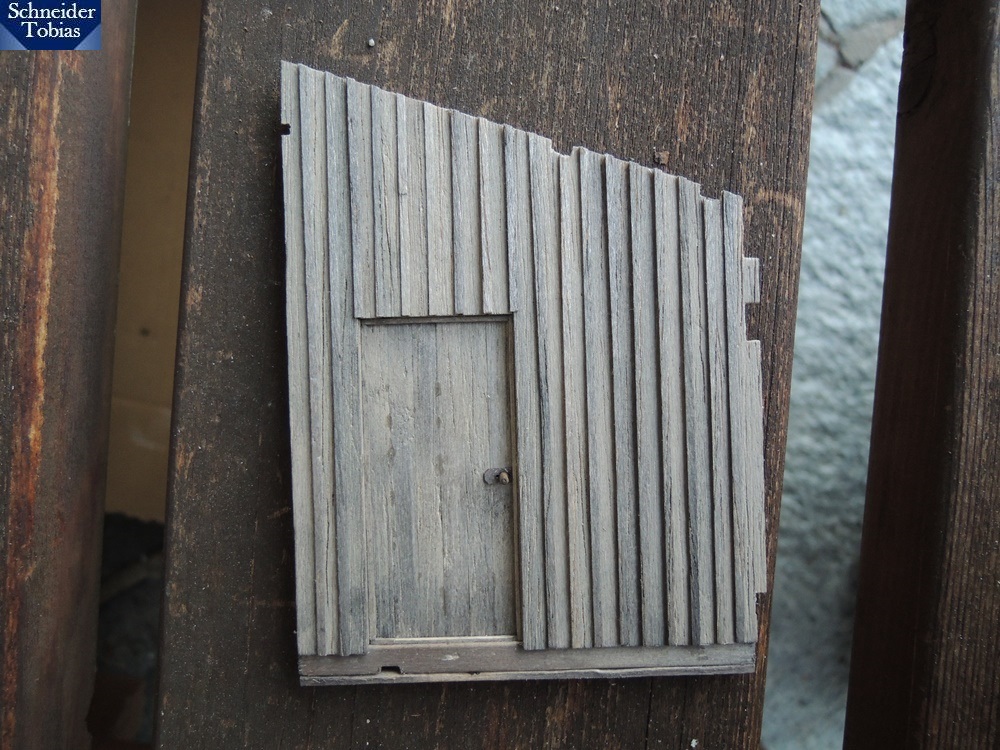 Die Bodenplanken sind aus Eisstäbchen entstanden, bei denen ich die typische seitliche Fase weggenommen habe. Ich finde, sie haben eine passende Stärke und gehen mit ihrer Maserung gut als kräftige Lärchenbretter durch.