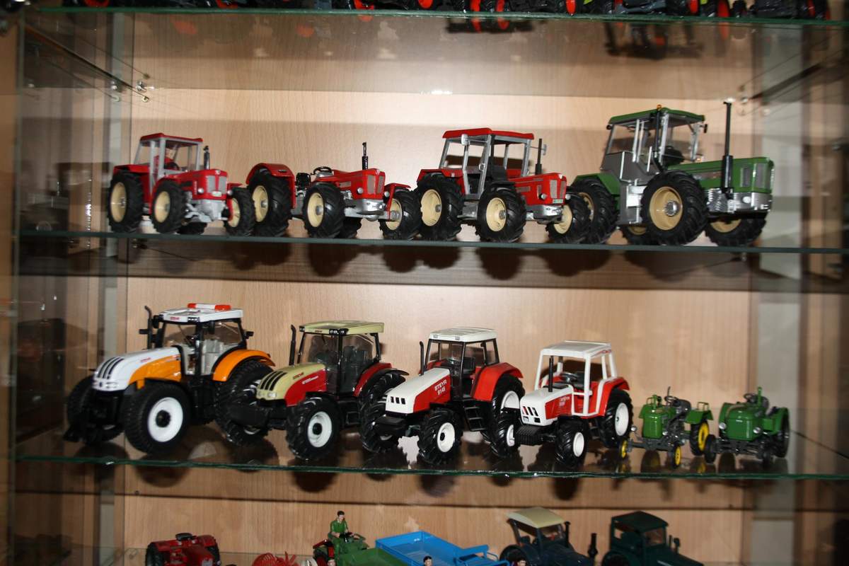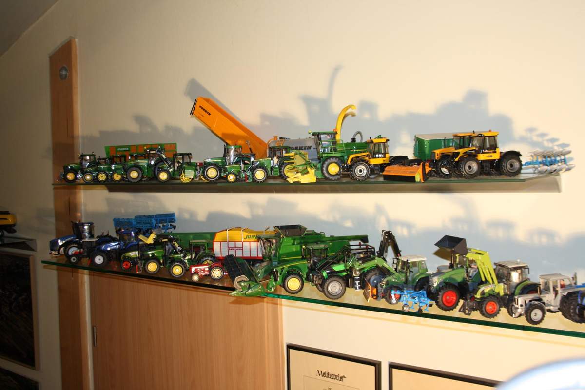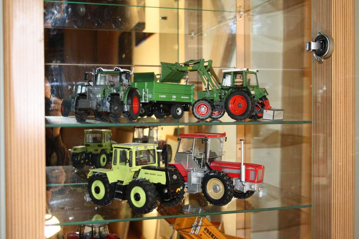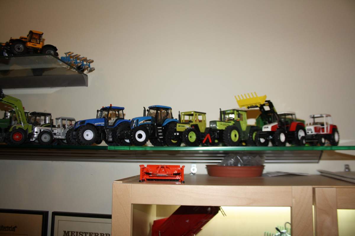 Da ich im Winter ein bischen mehr Zeit habe , möchte auch ich mal meine Sammlung hier vorstellen. Den Anfang machen meine Siku / Britains "Modelle" mit denen ich selber gespielt habe. Eine Sandkiste haben diese nie gesehen! Den MB-trac 800 von Siku z.B. , habe zu meinem 9´ten Geburtstag 1984 bekommen. Zu meinem 15´ten Geburtstag habe ich eine Vitrine mit Gläsern zum Trinken sowie ein Sofa bekommen , diese Gläser standen ungefähr 2-3 Wochen in dieser Vitrine bis ich sie rausgeschmießen habe und meine "alten Spielzeugtrecker" in die Vetrine gestellt habe.Damit war die Sammelleidenschaft "geboren!MfG Torsten