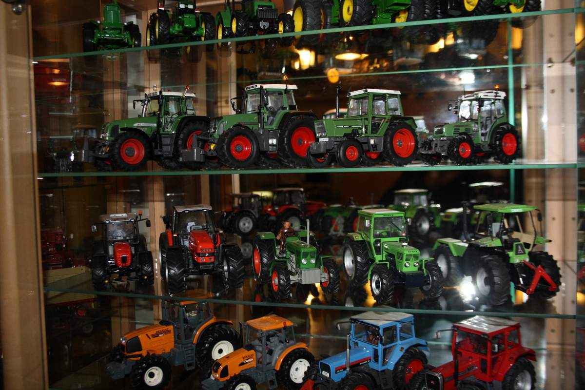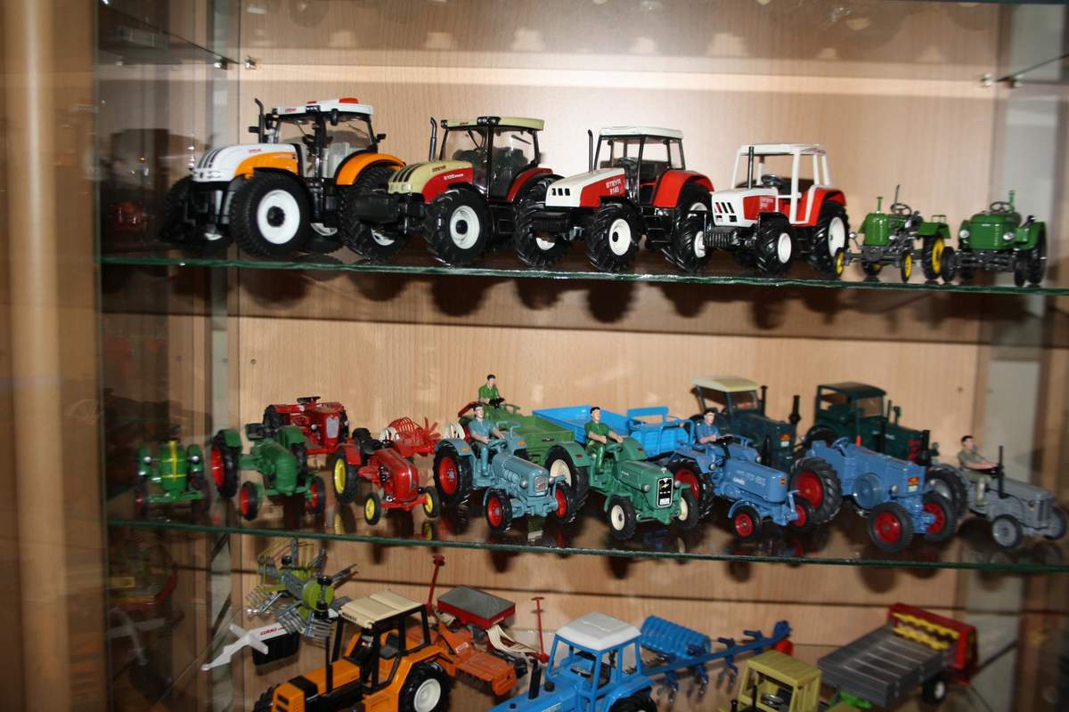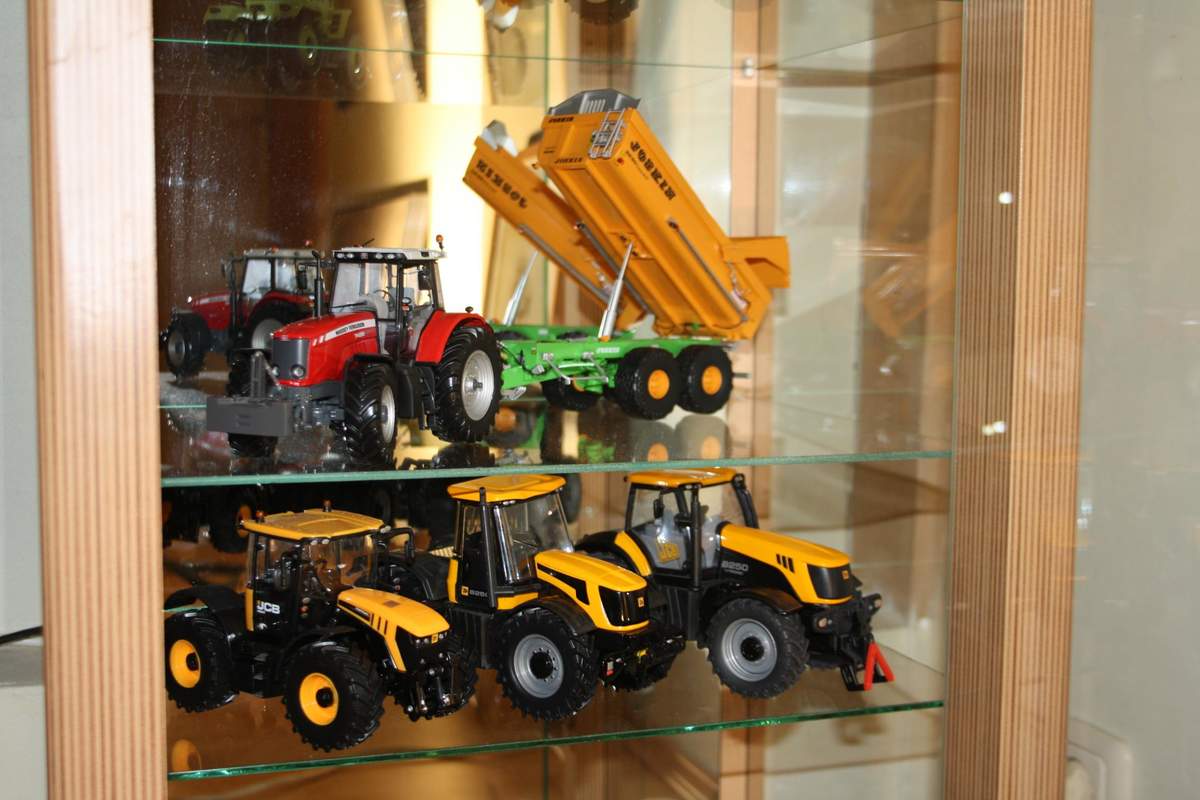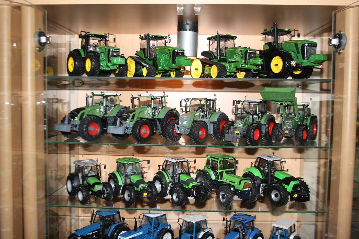 Da ich im Winter ein bischen mehr Zeit habe , möchte auch ich mal meine Sammlung hier vorstellen. Den Anfang machen meine Siku / Britains "Modelle" mit denen ich selber gespielt habe. Eine Sandkiste haben diese nie gesehen! Den MB-trac 800 von Siku z.B. , habe zu meinem 9´ten Geburtstag 1984 bekommen. Zu meinem 15´ten Geburtstag habe ich eine Vitrine mit Gläsern zum Trinken sowie ein Sofa bekommen , diese Gläser standen ungefähr 2-3 Wochen in dieser Vitrine bis ich sie rausgeschmießen habe und meine "alten Spielzeugtrecker" in die Vetrine gestellt habe.Damit war die Sammelleidenschaft "geboren!MfG Torsten