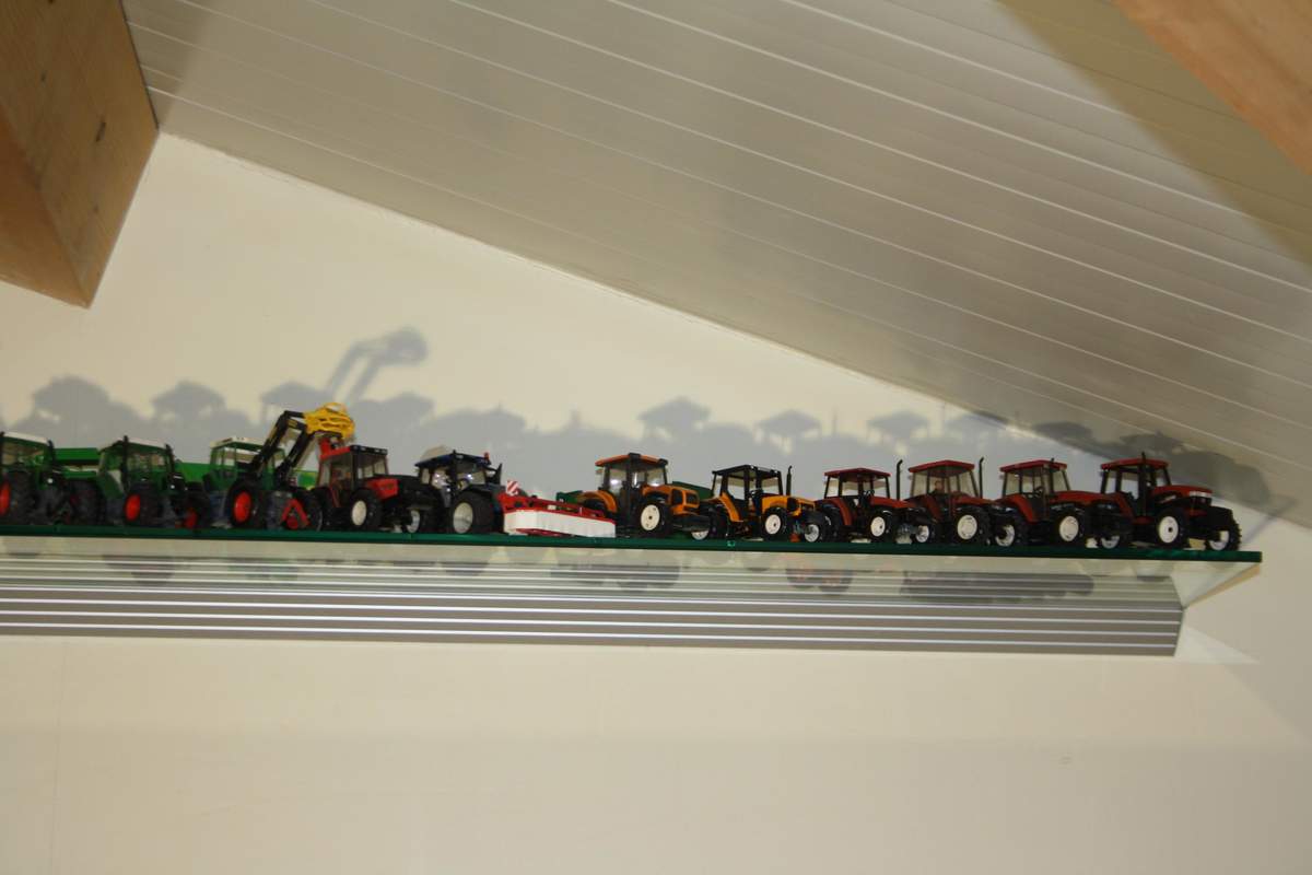 Die Regalle sind in ca 2,2 m Höhe rund ums Büro angebracht ! Die Idee "dieser Anordnung " habe ich bei einem Landmaschinenhändler gesehen, dieser hatte in Seinem Büro unter der Decke rundherum Regalle angebracht und diese mit Modellen von unterschiedlichen Maßstäben vollgestellt.