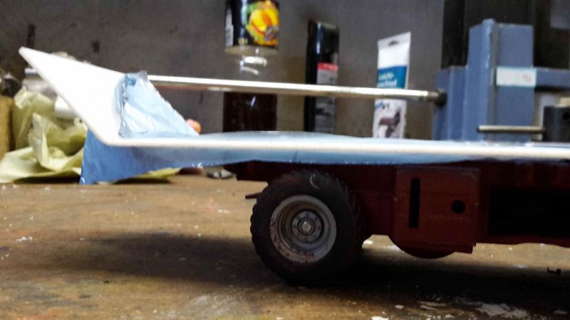 Er soll so in etwa wie ein Marshall Trailer als Drehschemel werden. Das hochgebogene Heck wird noch gekürzt und 2 mal gebogen