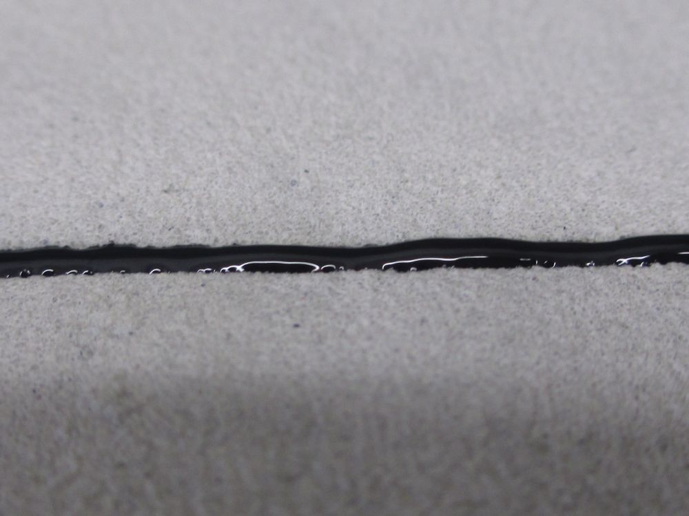 Das Verfugen mit Fenstermalfarbe hat auch geklappt. Die Idee kam mir ursprünglich durch das Modellwasser, was eine ähnliche Konsistenz hat. Die Lederschnur funktioniert in diesem Fall nicht, weil man dafür gleichmäßig breite und tiefe Fugen braucht. Der Kontrast ist noch sehr stark, weil die Betonfläche noch ziemlich hell ist. Aber auch das ändert sich heute Abend noch.