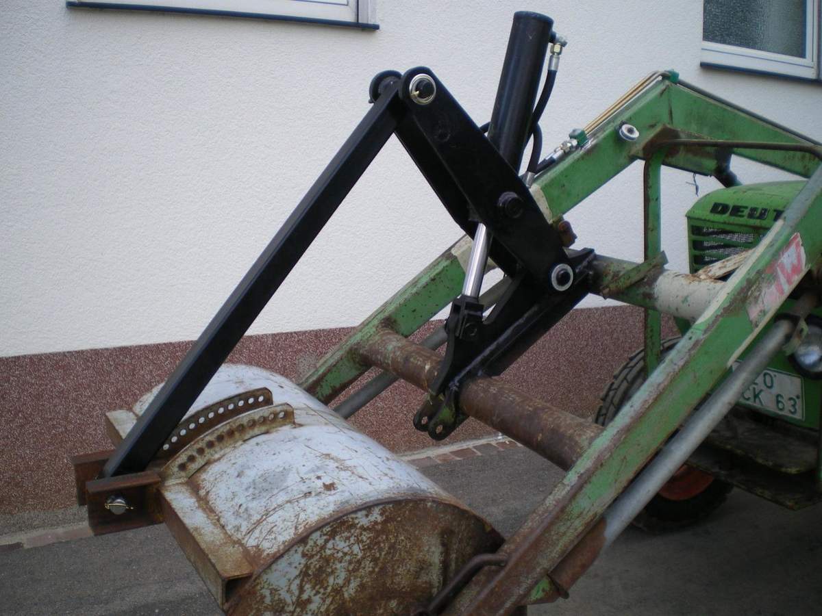 Das einfachste ist, du nimmst ein schönes Brett an Flacheisen und brennst dir aus dem Rest 3 Ösen / Augen aus und schweißt diese auf das Flacheisen. Dann hast du eine Verbindung zu den beiden oberen Aufnahmen des Schnellwechslers und das Flacheisen verbiegt garantiert nicht! Ja und selbsterklärend, das das hintere für die Hydraulik ist.