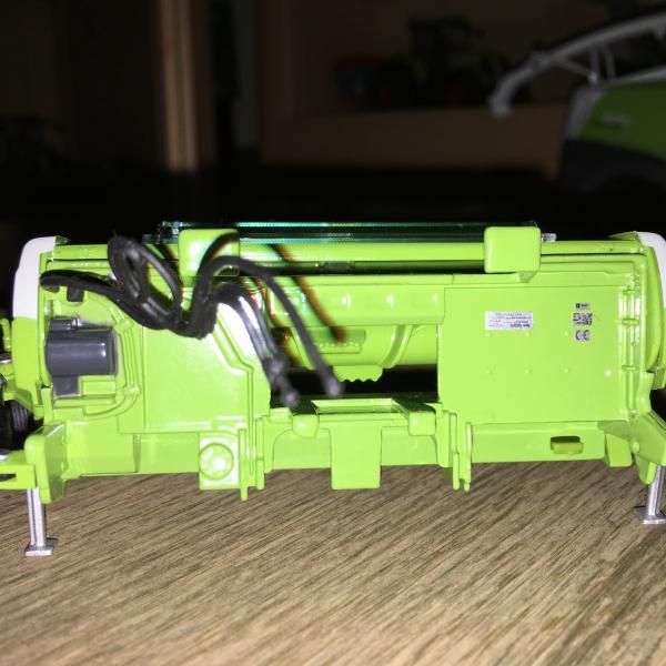 Zum Zeitpunkt der Verpackungserstellung beim Claas Jaguar war die Strebe am Geländer tatsächlich geplant. Dieses Detail war der Firma Claas und uns wichtig, aber sehr schwierig technisch umzusetzen. Bis zum letzten Termin haben wir versucht eine saubere Lösung des Problems zu finden, was uns aber leider nicht gelungen ist. Manchmal muss man bei Modellen im Maßstab 1:32 einfach Kompromisse eingehen. Eine Umsetzung der jetzt am Modell fehlenden Geländerstrebe hätte zu enormen Werkzeug- und auch zusätzlichen Fertigungskosten geführt, die für dieses Detail in keinem Verhältnis gestanden hätten. Nach Rücksprache mit der Firma Claas haben wir uns dann entschieden, das Modell wie jetzt ausgeliefert umzusetzen.