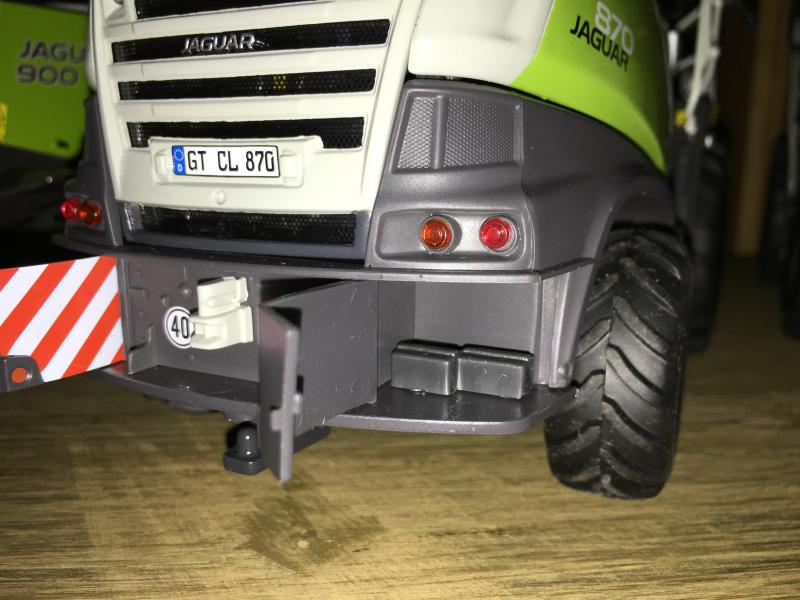 Zum Zeitpunkt der Verpackungserstellung beim Claas Jaguar war die Strebe am Geländer tatsächlich geplant. Dieses Detail war der Firma Claas und uns wichtig, aber sehr schwierig technisch umzusetzen. Bis zum letzten Termin haben wir versucht eine saubere Lösung des Problems zu finden, was uns aber leider nicht gelungen ist. Manchmal muss man bei Modellen im Maßstab 1:32 einfach Kompromisse eingehen. Eine Umsetzung der jetzt am Modell fehlenden Geländerstrebe hätte zu enormen Werkzeug- und auch zusätzlichen Fertigungskosten geführt, die für dieses Detail in keinem Verhältnis gestanden hätten. Nach Rücksprache mit der Firma Claas haben wir uns dann entschieden, das Modell wie jetzt ausgeliefert umzusetzen.