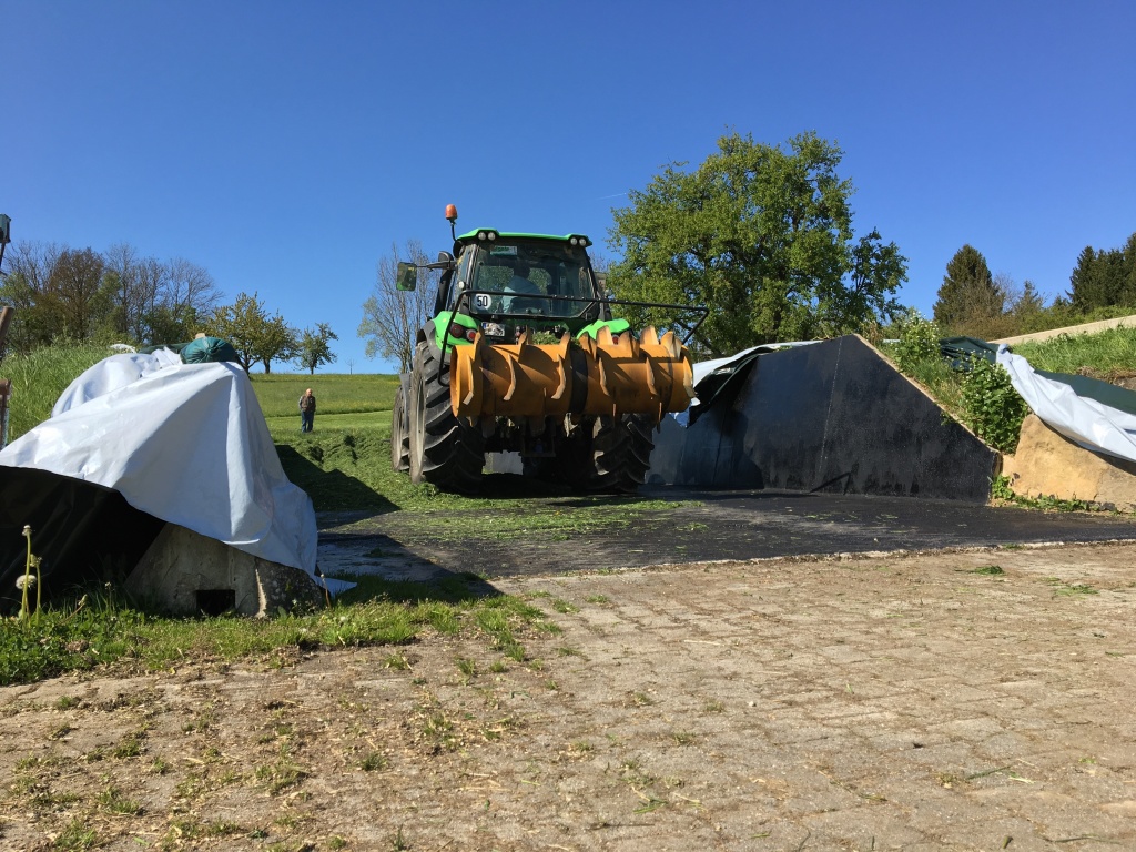 Danach kommen Bilder vom Silieren bei einem Bekannten auf dem Hof.