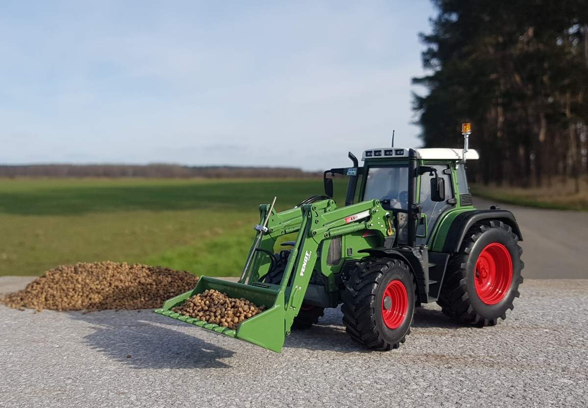 Da ich meine Modelle ja ehr auf Bezug oder Vorbild ausrichten möchte, in meiner Vitrine noch ein Vario 415 mit Frontlader stehen hatte, habe ich mich mal kurz an ihm ausgelassen. Das Vorbild der ist ein Fendt Vario 414 von Familie Trochelmann alias Röpershof. Einige werden ihn sicherlich kennen.