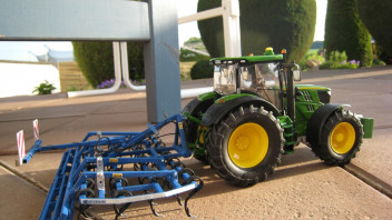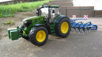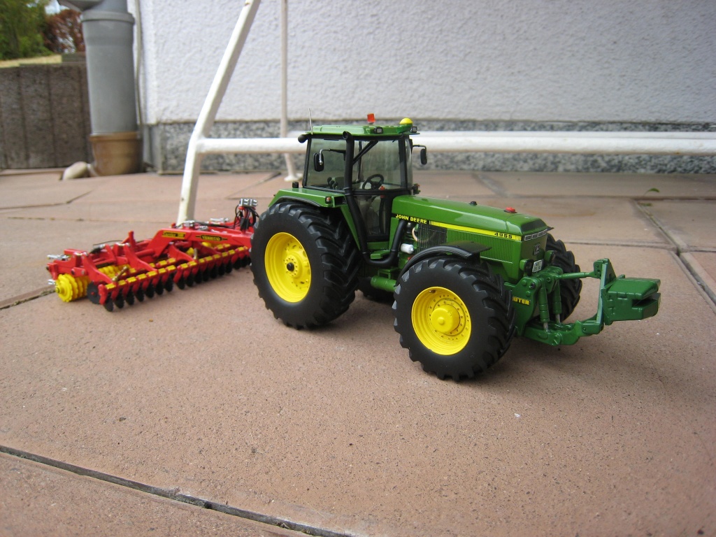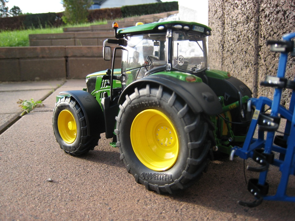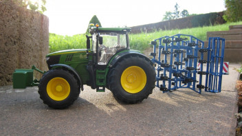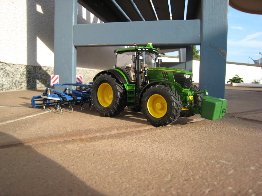 Hallo! Habe meinen John Deere 6210R Umbau von Wiking fertig. Der JD hat eine neue Bereifung auf 2,25 Meter Spur bekommen. Die Kotflügel hinten habe ich verbreitert. Und vorne natürlich auch auf die breite Spur eingestellt. Der Köckerling Allrounder ist von Manuoel ( Popei ), vielen Dank nochmal dafür!