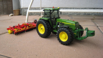 Meiner hat die Bereifung vom Presicion JD 8530 bekommen, eine Fronthydraulik von UH, Starfire von Wiking und viele weitere Details.