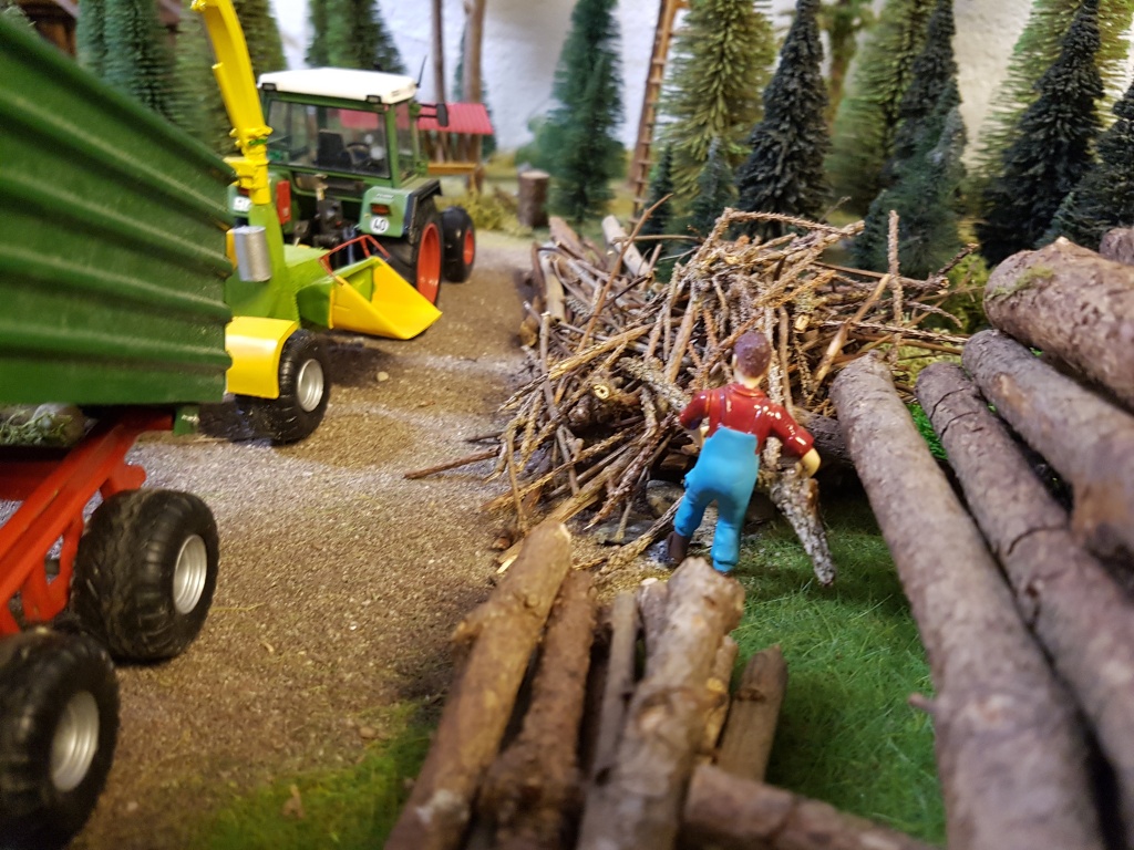 Das Dio und die Bilder gefallen mir echt gut! Ich mag die kleinen Eigenbau Maschinen wie den Hacker wirklich, auch die Landschaft gefällt mir richtig gut! Sehe ich es richtig dass du noch etwas Höhenunterschied bzw. einen kleinen Berg auf das Diorama hast? Das interessiert mich wirklich, hast du noch mehr Bilder davon oder ein Übersichtsbild vom Hof?