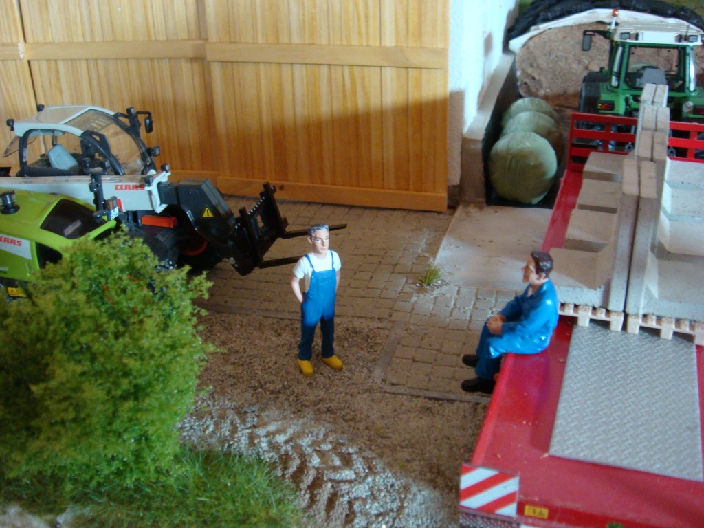 Hans ist mit dem Fendt schon an der neuen Halle angekommen. Aber Sepp ist wieder mal zu spät. Also Handy raus und Sepp dampf machen.In der zwischen Zeit parkt der Lehrling den Fendt um, zum abladen.