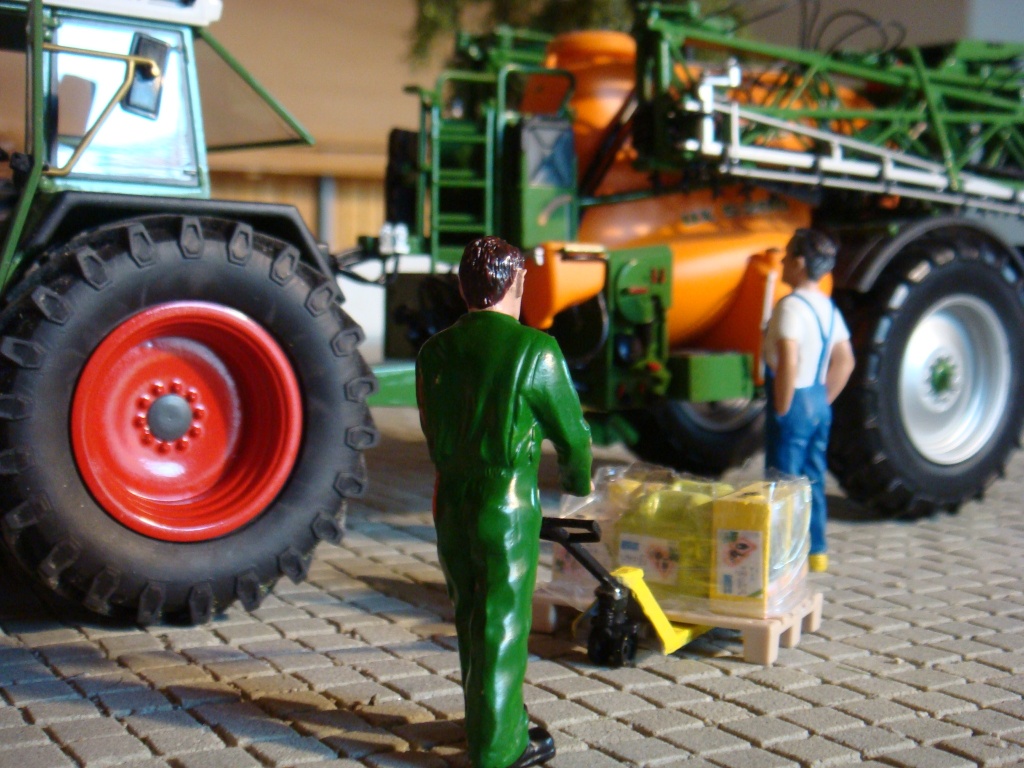 Sepp war mit dem Spritzen fertig und fuhr zur Halle, wo der Lehrling das Silo saubermachen mußte. Als Sepp da ankam, traute er seinen Augen nicht. Der soll mir heute bloß nicht mehr unter die Augen kommen, der Kerl. Schimpfte Sepp und fing an alles aufzuräumen. Später kam auch der Lehrling mit dem Frontlader vorbei, um die Rundballen wegzuheben. Dabei bekommt er die volle Ladung ab, vom Sepp. Du solltest es doch sauber machen ....