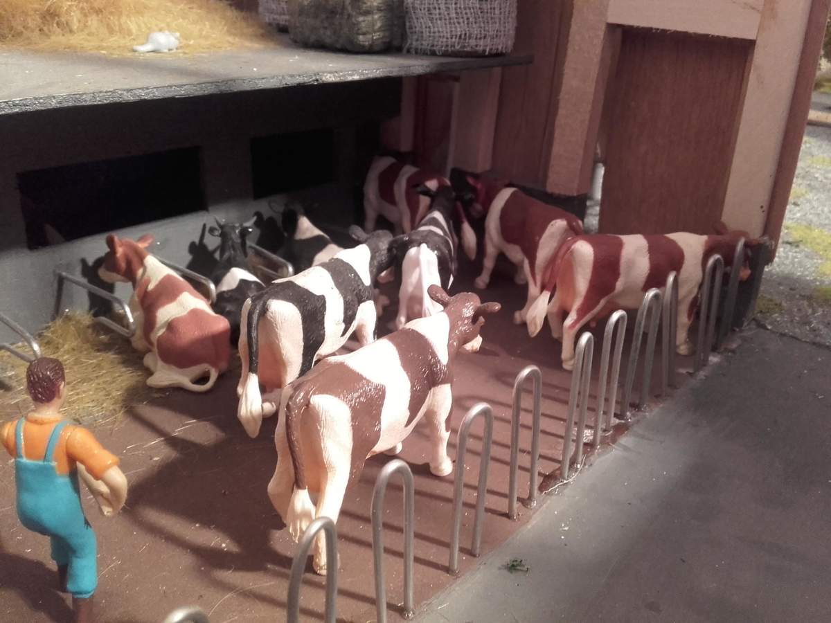 während Opa und ich bei den Fahrsilos wahren hast der Lehrling schon die Kühe zum Melkstall getrieben und der Praktikant einen Ballen an den Kälber verfüttert. Opa fährt schon in den Stall und fütter die fertig gemolkenen Kühe. Es wird noch mit dem Futterkehrreifen einmal auf und ab gefahren. Zum Schluss muss noch bei einer Kuh Klauenpflege gemacht werden.